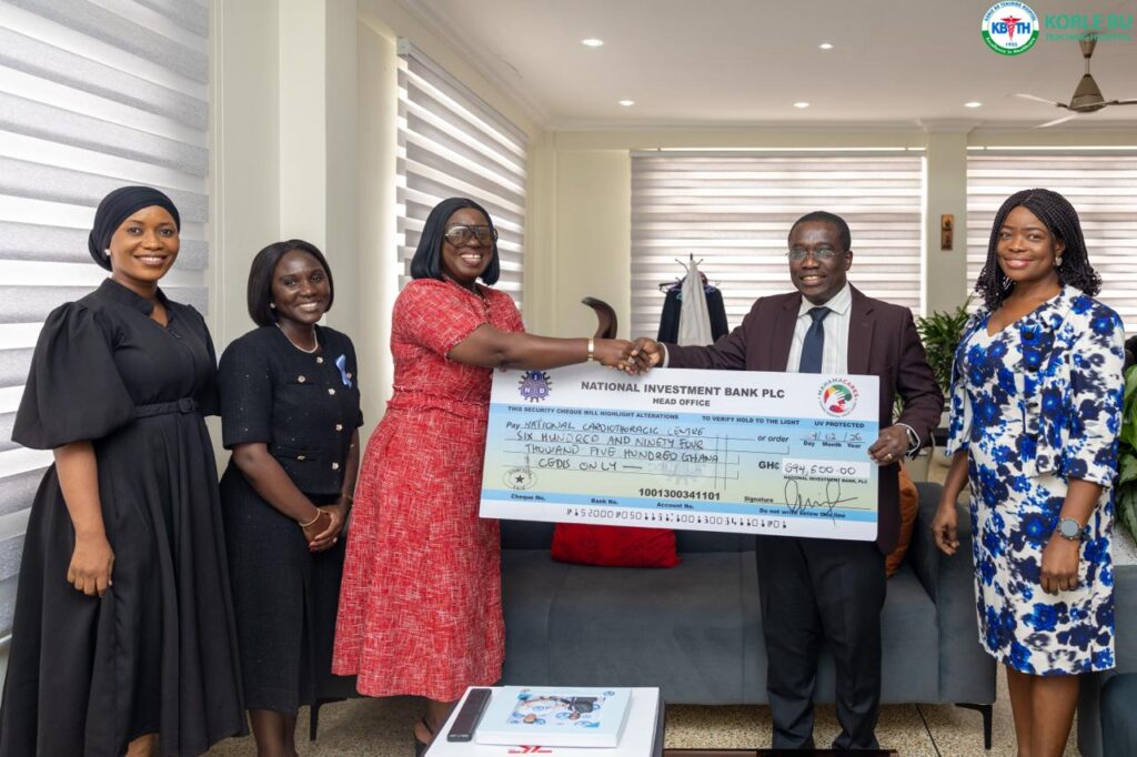 The Administrator of the Trust Fund, Madam Obuobia Darko-Opoku, presented a cheque of GH¢694,500 to the National Cardiothoracaic Centre . The cheque was received by the Director of the Center, Dr. Kow Entsua-Mensah, to cover the cost of open-heart surgeries for five (5) children.