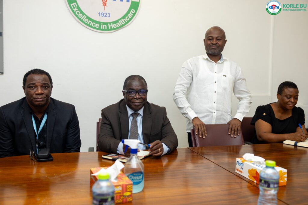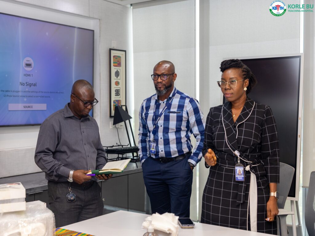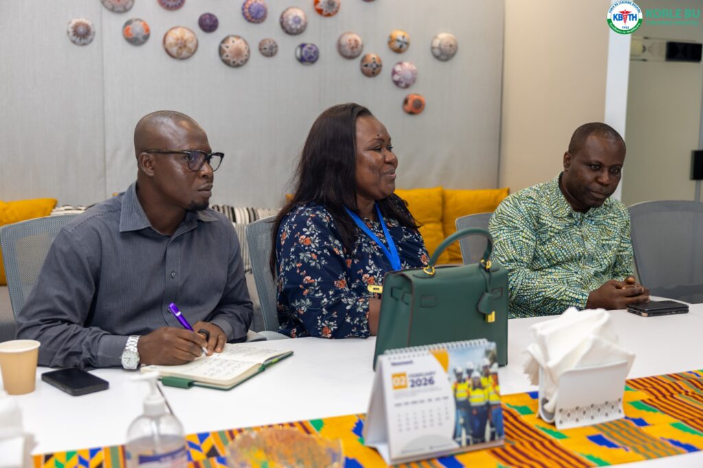 Senior Management of the Hospital present were Dr. Frank Owusu Sekyere- Director, Medical Affairs; Mr. Munir Alhassan- Director of Administration; Mr. Yehuza Jawula- Director Human Resources; Dr. Charles Ofei-Palm – Director of Pharmacy; Rev. Aimee Esinam Akotey – Director of Nursing and Midwifery Services; Mrs. Cynthia Gyakyie– Acting Director General Services; Dr. Kenneth Baidoo- HOD, New Allied; Mr. Ibrahim Abu-Jajah – Acting Chief Internal Auditor; Madam Patience Adjei- DCNO ENT and Mr. Mustapha Salifu – Head of Public Relations, KBTH.