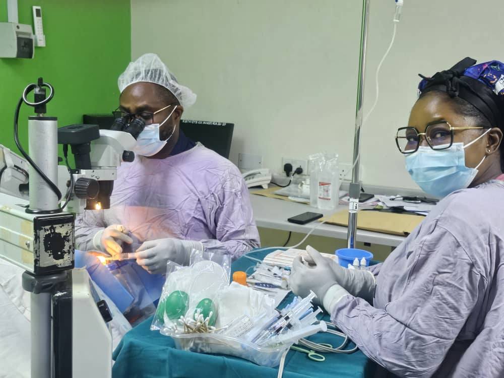 The surgical procedures were led by Dr. Andrew Elikem Akafo, Specialist Ophthalmologist, the team lead, and head of Outreach Services at the Eye Centre. He was supported by a team of experienced ophthalmic surgeons.